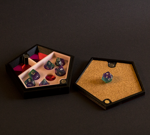- 2 larger compartments for tokens, small trinkets, or miniatures